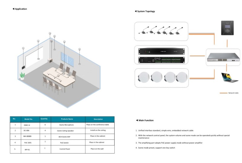 o Tích hợp nguồn điện POE: Hợp tác với các công tắc POE để nhận ra nguồn điện một lần + truyền dữ liệu của micrô/loa Dante (như loạt Shure MXA).